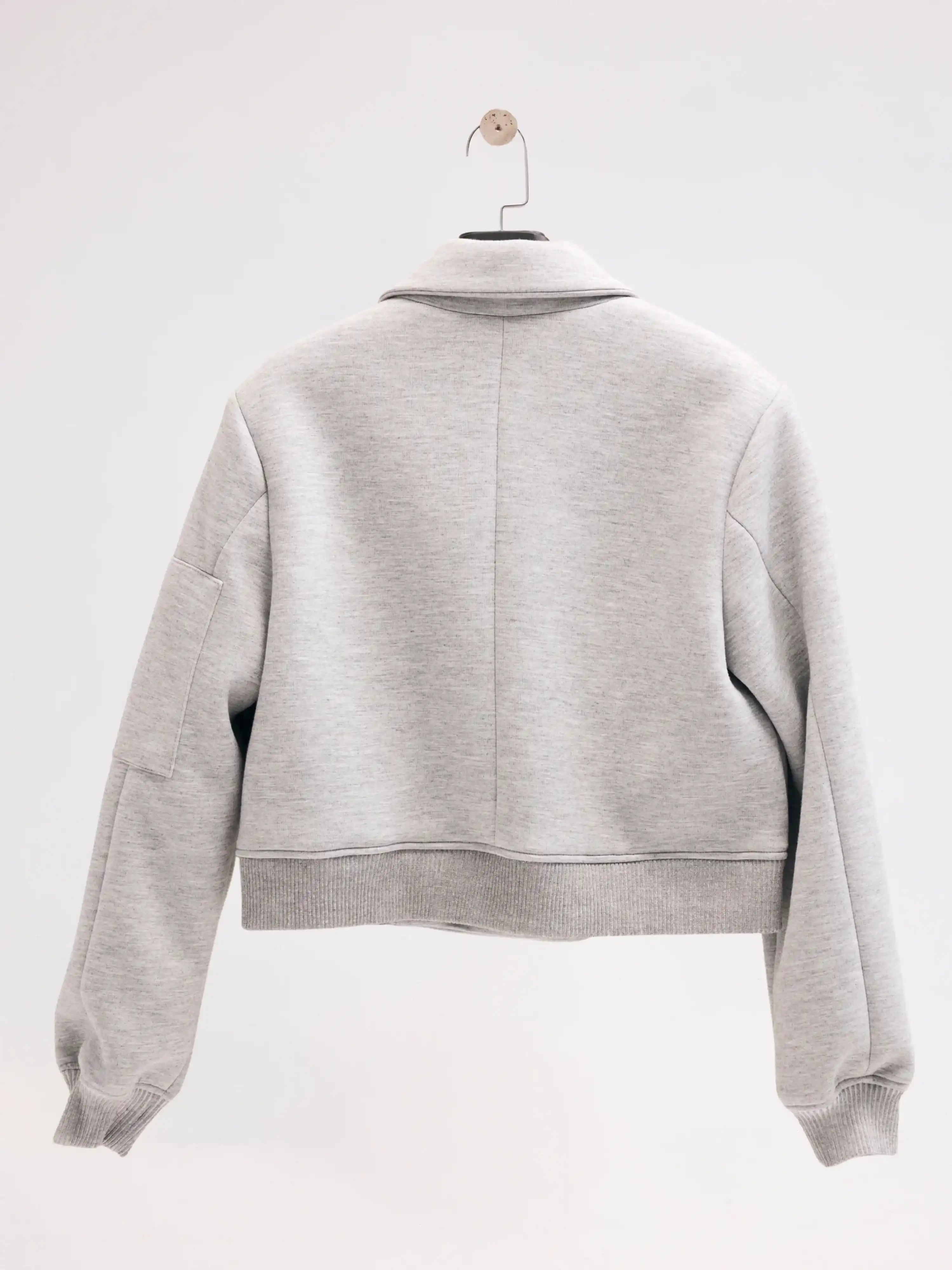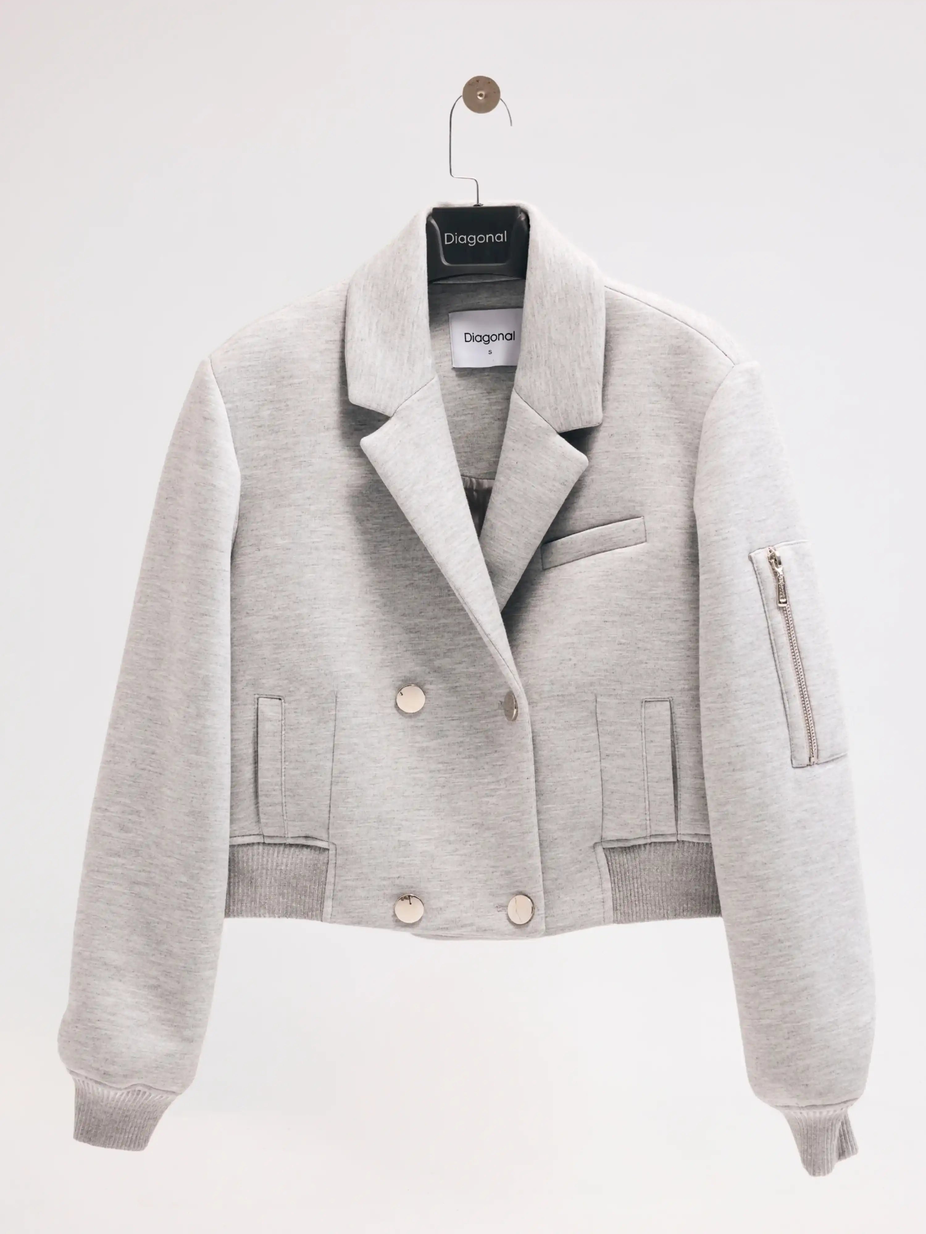 Gri Kruvaze Yaka Bomber Ceket